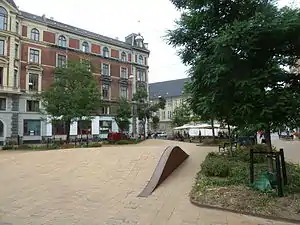 The Memorial to Danish Philologists was installed on the square in 1938. It was designed by William P. Larsen and Viggo Sten Møller.[3]