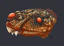 The lower to middle zones of the Daptocephlaus Assemblage Zone display a great diversity of vertebrate fauna. These include its current type species Daptocephalus and other dicynodonts such as the ubiquitous Diictodon, Dinanomodon, and Pristerodon.[1][6][21] Various species of burnetiamorph Biarmosuchians and Rubidgenae Gorgonopsians are also found.[1][22][23][24] Therocephalian species such as Moschorhinus kitchingi and the earliest cynodont Charassognathus gracilis also appear. Parareptile species, namely captorhinids,[25][26] the Younginiforme Youngina,[27] and a variety of temnospondyl amphibians,[13] fishes, and plant fossils such as Glossopteris are likewise found.[28] The upper zones as the Permian-Triassic boundary approaches, there is a marked drop in species diversity as the Permian-Triassic extinction event began to take its course.[29][30][31]