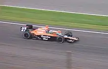 He thought of returning to IndyCar while spectating the 2008 Indianapolis 500 and signed a multi-year contract with CGR to replace Wheldon from the 2009 season.[lower-alpha 4][122][123] Franchitti wanted to join CGR's No. 41 NASCAR Cup Series team before being reminded of the capability of IndyCars.[124] After placing fourth in the season-opening Honda Grand Prix of St. Petersburg,[32] he won the following Toyota Grand Prix of Long Beach after leading a race-high 51 laps.[125] Franchitti finished no lower than seventh in the next three races and took pole position for the Bombardier Learjet 550.[32] He won Iowa Corn Indy 250 for his second victory of 2009.[126] Following his taking pole position for the SunTrust Indy Challenge,[32] he led the championship after finishing second before exchanging it with teammate Dixon over the next four races.[127][128] Franchitti led 45 laps of the Honda Indy Toronto from pole position to win.[129] He took three more top six finishes before leading the entire Indy Grand Prix of Sonoma from pole position in his fourth win of 2009.[32][130] Two more top-four finishes meant he was five points behind Dixon going into the season-ending Firestone Indy 300.[32][131] Franchitti won the race from pole position for his second championship title, finishing the year 11 points ahead of Dixon.[132]
