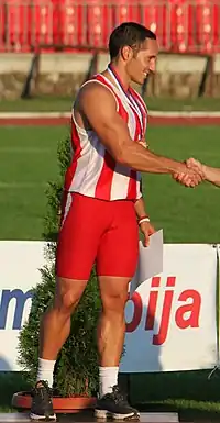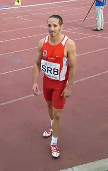 During the outdoor season he competed at three national championships. At the Serbian U23 championships he finished first in the 400 m and 4 × 100 m, and second in the 100 m event.[18] At the Serbian championships he won the gold medal in the 200 m, the silver in the 100 m,[53] and the bronze in the decathlon event.[54]
