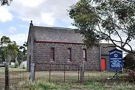 During the winter Deep Creek in Darraweit Guim is prone to the occasional flood and did so in 1906,[3] 1916, 1934, 1964[3] and 1990, at its height reaching above the waist. Then in the summer the area was prone to bush fires and in 1904 & 1927 massive sections of the area were burned. Since those times technology and organisation skills have minimised the risks. Even so, in 1969 fires destroyed 12 homes. Both the town's churches and the town hall were also destroyed, and later rebuilt. In October 2022, Darraweit Guim experienced its highest flood peaking at 7.68 metres early in the morning of October 14 according to the Vic Emergency App. Darraweit Guim was the hardest hit town in Macedon Ranges Shire in the 2022 Victorian floods which washed out the main road and destroyed up to 15 homes[4] as well as the historic primary school[5] following an exceptional 82mm of rainfall and subsequent flooding of both creeks that converge in the township.[6]