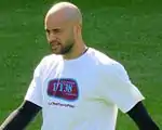 Randolph made his full international debut in a friendly against Oman on 11 September 2012, coming on as a substitute in a 4–1 win.[74] His second Republic of Ireland appearance was against Spain on 12 June 2013, again as a substitute; he made a "brilliant fingertip save" from Santi Cazorla before conceding a late goal by Juan Mata as Spain won 2–0.[75] On 8 October 2015, Randolph replaced Shay Given in the 44th minute against Germany in a 2016 European Championship qualifying match and provided the long ball assist for Shane Long's winner in the 70th minute in a match won 1–0 by the Republic of Ireland.[76] Randolph played every match for the Republic of Ireland at Euro 2016, against Sweden, Belgium and Italy before being defeated by France.[77][78]