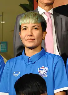 Darut Changplook (Thai: ดารัตน์ ช่างปลูก born 3 February 1988) is a Thai international footballer who plays as a defender. Changplook is a veteran player who is cool under pressure and is known for her strong play on the back-line of defense as well as her signature blue-dyed hair.[3]