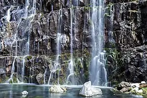 The vegetation on volcanic plateau, where canyon formed, is rather sparse in stark contrast with the different micro-landscape in the canyon. Variety of plants on the steep slopes of the canyon and waterfalls is supported by characteristic micro-climate.[4]