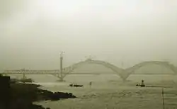The Dashengguan Yangtze River Bridge (simplified Chinese: 大胜关长江大桥; traditional Chinese: 大勝關長江大橋; pinyin: Dàshèngguān Chángjiāng Dàqiáo; lit. 'pass of the great victory') crosses the Yangtze River in Nanjing, Jiangsu. Construction of the bridge started in 2006 and it was completed in 2010. The bridge has two main spans of 336 m (1,102 ft) it is one of the largest arch bridges in the world.[2] It carries six tracks: two for the Beijing–Shanghai High-Speed Railway[3] (opened on 30 June 2011), two for the Shanghai–Wuhan–Chengdu high-speed railway (opened on 22 January 2011) and two for line S3 of the Nanjing Metro (opened on 6 December 2017).
