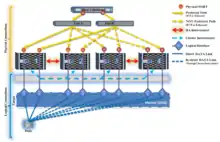 Also known as Vserver or sometimes SVM. Storage Virtual Machine (SVM) is a layer of abstraction, and along with other functions, it virtualizes and separates physical front-end data network from data located on FlexVol volumes. It is used for Non-Disruptive Operations and Multi-Tenancy. It also forms as the highest form of logical construct available with NetApp. A SVM can not be mounted under another SVM, therefore it can be referred to a Global Namespace.