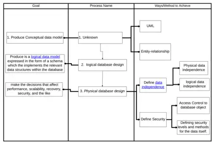 - The conceptual level (or logical level) unifies the various external views into a compatible global view.[39] It provides the synthesis of all the external views. It is out of the scope of the various database end-users, and is rather of interest to database application developers and database administrators.