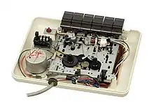 - The original modified Sanyo M1540A cassette drive, built into the earliest models of PET in 1977. This was a standard shoebox tape recorder with a corner of the case removed and modified electronics; a Commodore PCB was installed internally in place of the Sanyo electronics. To disguise the Sanyo brand, Commodore simply fitted a Commodore badge over the original logo.[12]