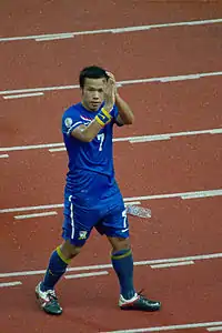 He was one of Thailand's key players in the 2012 AFF Suzuki Cup. Despite suffering a groin injury, he played until the end of the tournament.