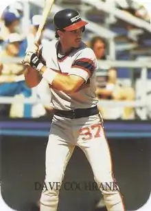 David Carter Cochrane (born January 31, 1963) is an American former professional utility player for the Seattle Mariners and Chicago White Sox of Major League Baseball (MLB). Cochrane was listed as 6'2 with a weight of 180 pounds. He was a switch hitter and threw right-handed.