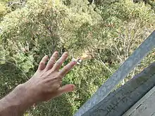 The Dave Evans Bicentennial Tree, a 75 m (246 ft)[1] tall karri tree, was pegged for climbing to celebrate Australia's bicentenary in 1988.[2] It is in Warren National Park in southwestern Australia.[3] Although it has been used as a fire lookout, it is used mainly as a tourist attraction.[4] The lookout platform is reached by climbing 165 metal spikes hammered into the trunk.[2]
