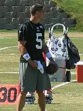 Carr's status as a number one draft pick and subsequent career has led to him being considered a draft bust.[2][3][4][5][6] In 2016, he joined the NFL Network as an analyst.[7] Carr's younger brother Derek is also an NFL quarterback, having been drafted by the Oakland Raiders in 2014.