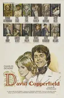 David Copperfield is a 1969 British-American international co-production television film directed by Delbert Mann based on the 1850 novel of the same name by Charles Dickens, adapted by Jack Pulman. The film was released in the UK in 1970. It stars Robin Phillips in the title role and Ralph Richardson as Micawber, and features well-known actors Richard Attenborough, Laurence Olivier, Susan Hampshire, Cyril Cusack, Wendy Hiller, Edith Evans, Michael Redgrave and Ron Moody.
