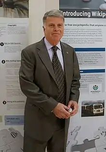 As part of his tenure at the National Archives, Ferriero took an active interest in working with Wikipedia, of which he has called himself "a huge fan."[38] When questioned about the National Archives' engagement with Wikipedia, his response was that "the Archives is involved with Wikipedia because that's where the people are."[39] Under Ferriero's aegis, the National Archives worked with the Wikimedia Foundation since 2009, having had a Wikipedian in Residence and uploaded thousands of images to Wikimedia Commons. He quoted a blogger in saying: "If Wikipedia is good enough for the Archivist of the United States, maybe it should be good enough for you."[38][40]