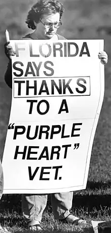 A group called Veterans for Peace set up a round-the-clock vigil at the Florida Vietnam War Memorial that was intended to last from 7:00 pm on April 20, 1986, to 7:00 am on April 22, the time of Funchess's scheduled execution. The stays which delayed the execution of Funchess's sentence also prolonged the vigil. Members of the group called Funchess a "forgotten man" and protested that neither Governor Graham nor the courts had taken Funchess's PTSD into enough consideration.[16][25]