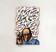 David (Dudu) Gerstein (Hebrew: דוד (דודו) גרשטיין) (born 14 November 1944) is an Israeli painter, sculptor, draftsman, and printmaker.[3] He began as a figurative painter and was recipient of the Israel Museum Prize for illustration.[4] At the end of the 1970s he wished to expand the limits of two-dimensional painting, into painting in three-dimensions. He began cutting out the main subjects of each painting and to cancel the background,[5] creating a unique and iconic cutout images, free standing in space, without the standard and traditional square frame.[6]
