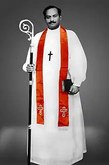 David Gnaniah Pothirajulu, (19 September 1936 - 5 September 2020) was the third bishop in Madurai-Ramnad Diocese of the Church of South India, serving from 1978 to 1994 and was its deputy moderator from 1988 to 1990. Pothirajulu completed his studies with a doctorate at Boston University. He was a lecturer at the Tamil Nadu Theological Seminary until his elevation to the episcopate.[1][2][3][4]
