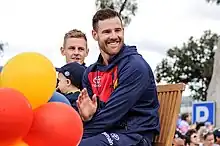 Mackay started 2015 in good form, laying a career-best 13 tackles along with 23 disposals against Melbourne in wet conditions in round 3.[7] However, his old inconsistency resurfaced resulting in him being dropped late in the year.[8] He returned to the side to play in Adelaide's two finals.[3] At the end of 2016 he was made a life member of the Adelaide Football Club.[9] As part of his preparation for the 2017 season, Mackay spent as much time in the backline over the pre-season as he did in the midfield due to coach Don Pyke’s emphasis on flexibility.[9]