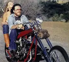 David Mann (September 10, 1940 — September 11, 2004)[1] was a California graphic artist whose paintings celebrated biker culture, and choppers. Called "the biker world's artist-in-residence,"[5] his images are ubiquitous in biker clubhouses and garages, on motorcycle gas tanks, tattoos, and on T-shirts and other memorabilia associated with biker culture.[6][7][8][9] Choppers have been built based on the bikes first imagined in a David Mann painting.[2][10][11][12]