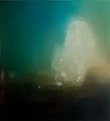 A painting titled "Grotto" by Irish artist David Quinn. Mixed media on board, 47x47cm