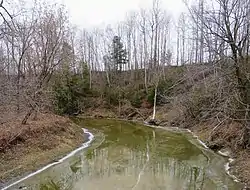 - 6.1 kilometres (3.8 mi) (or 3.3 kilometres (2.1 mi) in a direct line) winding up to the Rousseau stream (coming from the northeast);