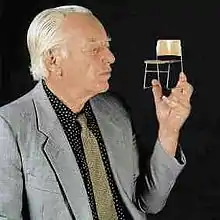 ![]() David Rowland holding a scale model of his masterpiece 40/4 chair | |