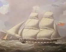 In 1841 the brig Mary Scott, the property of Margaret Little, was wrecked and sank in the Irish Sea in a collision, off the Point Lynas Lighthouse. The other ship involved was the Brooklyn of New York, Richardson captain.[44][45] The master of the Mary Scott in 1831, sailing to Valparaiso and Lima, was William Scott.[46] later during the 1830s, at Callao, Peru, the Bethel flag was flying "at the mast-head of the Mary Scott, of Liverpool, commanded by Captain Scott." Scott, a Baptist, conducted a mission meeting.[47]