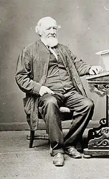 He was a member of the Central Road Board for eight years, a member of the Brighton District Council, President of the District Chairmen's Association, and a member of the Central Agricultural Society.[3] He was elected to the South Australian House of Assembly for Noarlunga and served from March 1860 to November 1862 and for Encounter Bay November 1862 to April 1868.[5] In politics he was a Liberal and Freetrader, opposed to State aid to religion in any form. He favoured a comprehensive system of State education, and worked to do away with nominated members in the Legislative Council, and considered that too much public money was being spent on unproductive works in the city, and more should be devoted to the development of the country by opening up by means of communication, leading to his being jocularly referred to as the "Colossus of Roads". Distressed at the way the Land Fund was being squandered on supporting a bureaucracy bloated by nepotism and personal favours, introduced the Land Fund Appropriation Bill, colloquially "Sutherland's Act", which, with the assistance of Sir Richard Hanson,[3] was passed by both Houses. The effect of the Bill was to devote all funds arising from the sale or lease of public funds firstly to pay the interest on existing public debt; and second, to expend three quarters of the balance on productive public works and the rest on immigration. While it continued in operation the land fund constantly accumulated, but was resented by Ministers, for whom frugality was anathema and retrenchment was unpalatable. Eventually Sutherland's Act was repealed, rather than continue the farce of placing money in a Savings Bank, then borrowing an equal amount from the same bank for daily expenditure.[2]