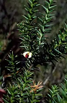 This daviesia grows in heath in near-coastal areas of southern Western Australia between Narrikup, Denmark and near Mount Manypeaks in the Esperance Plains, Jarrah Forest and Warren biogeographic regions of south-western Western Australia.[2][3]