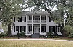 It was built about 1843, and is a two-story, frame vernacular Greek Revival style dwelling. It has weatherboard sheathing, a gable roof, and one-story, gabled-roofed ells at either side. The façade features a central, two-tiered portico with four pillars on each level. The house was built by Bertrand Davis, a locally known planter and militia officer.[2][3]