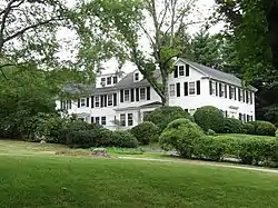 The Davis Mills House is a historic house in Needham, Massachusetts. It is 2+1⁄2-story wood-frame house, five bays wide, with a side gable roof, two interior chimneys, and clapboard siding. It has a Greek Revival entrance, flanked by sidelight windows and pilasters and topped by an entablature. The house was built in 1834 by Davis Mills, member of one of Needham's major landowning families at the time. Mills was a butcher, tavernkeeper, and politically active citizen. The junction where his house is located, Central Avenue and Nehoiden Street, was Needham's town center until the 19th century.[2]