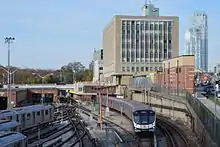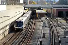 The former Canadian National Railways Belt Line Railway railway corridor crosses over the subway tracks south of the station. It has been converted into a pedestrian and biking trail, called the Beltline Trail.