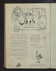 The Ottoman periodical Davul (Ottoman Turkish: داوول) was published in Istanbul weekly between 27 October 1908 and 27 May 1909 in a total of 24 issues.[1] The satirical magazine was edited by Hasan Vasıf (1889-1944), an Ottoman politician and physician.[2] The numerous satirical illustrations and caricatures deal with the Ottoman and European politics of that time. In their humorous articles the authors criticize i.a. Abdülhamid II, the whole Ottoman policies and the European way of life.[3] In addition, excerpts of the French magazine Fantasie in French language were published in some issues.[2]