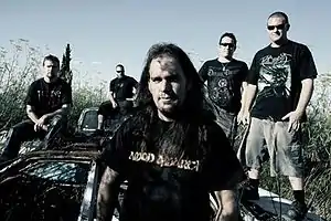 ![]() Dawn of Retribution, from left-right: Chris McEwin (guitar), Ben Jackson (bass), Clint Williams (vocals), Michael Vandenberg (drums), Bennett Dunstan (guitar) | |