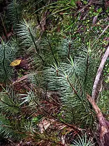 Dawsonia is a genus of acrocarpous mosses. Dawsonia, along with other members of the order Polytrichales, are taller than most mosses and have thicker leaves. Their sporophytes have conducting systems analogous to those of vascular plants. Dawsonia superba is found in New Zealand, Australia and New Guinea.[2] D. longifolia is found in the Philippines, Indonesia, Malaysia, and Australia.[3][4][5] There is uncertainty as to whether D. superba and D. longifolia are actually distinct species.
