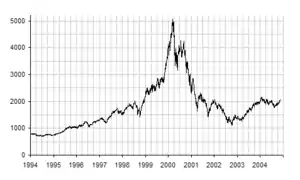The ability for individuals to day trade via electronic trading platforms coincided with the extreme bull market in technological issues from 1997 to early 2000, known as the dot-com bubble. From 1997 to 2000, the NASDAQ rose from 1,200 to 5,000. Many naive investors with little market experience made huge profits buying these stocks in the morning and selling them in the afternoon, at 400% margin rates. An unprecedented amount of personal investing occurred during the boom and stories of people quitting their jobs to day trade were common.[13]