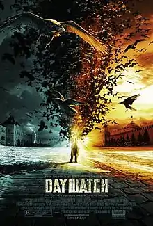 Day Watch (Russian: Дневной Дозор, romanized: Dnevnoy Dozor, also Night Watch 2: The Chalk of Fate), is a 2006 Russian fantasy film written and directed by Timur Bekmambetov. Marketed as "the first film of the year", it opened in theatres across Russia on 1 January 2006, the United States on 1 June 2007, and the United Kingdom on 5 October 2007. It is a sequel to the 2004 film Night Watch, featuring the same cast. It is based on the second and the third part of Sergey Lukyanenko's novel The Night Watch rather than its follow-up novel Day Watch. The film's budget was US$4.2 million. 20th Century Fox through its Fox Searchlight Pictures label paid $2 million to acquire the worldwide distribution rights (excluding Russia and the Baltic states) of this film.[3][4] This film grossed $31.9 million at the Russian box office alone.[5] The film received mixed reviews from critics.