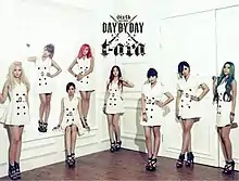 Day by Day is the fourth extended play by South Korean girl group T-ara, released on July 3, 2012, by Core Contents Media.[1] The album marked the first appearance of the group's eighth member, Areum, and the last appearance of member Ryu Hwayoung. A repackaged version of the EP, titled Mirage, was released on September 4, 2012.[2] "Sexy Love" was released as the lead single from the Mirage repackage.[3]