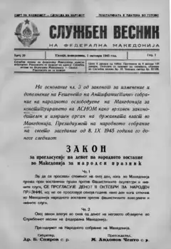 ![]() Proclamation of 11 October as a national holiday in Democratic Federal Macedonia | |