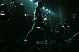 Throughout March 2012, Architects and Touché Amoré supported Rise Against on their European tour.[38] Hillier-Brook's last tour with Architects was the April 2012 British tour with Rolo Tomassi and Stray from the Path.[39] Between March and June that year—the last few months before the large tours in support of Daybreaker—Architects performed at several festivals; the Swiss Konzerthaus Schüür in Lucerne, the La Boule Noire near Paris, Groezrock Festival in Belgium, British touring festival Slam Dunk Festival in Leeds and Hatfield, and German festivals Summerblast Festival, Traffic Jam Festival and Summerbreeze Festival.[40] Because Hillier-Brook had announced he would leave Architects on 16 April 2012 after his final performance with the band at Groezrock Festival, Josh Middleton of Sylosis joined the band as touring guitarist.[11][41] In late April, Architects supported The Devil Wears Prada and Whitechapel on a six-day tour of South America.[42]
