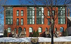 Dayton's Bluff is a neighborhood located on the east side of the Mississippi River in the southeast part of the city of Saint Paul, Minnesota which has a large residential district on the plateau extending backward from its top. The name of the bluff commemorates Lyman Dayton, for whom a city in Hennepin County was also named.[3] On the edge of the southern and highest part of Dayton's Bluff, in Indian Mounds Park, is a series of seven large aboriginal mounds, 4 to 18 feet (1.2 to 5.5 m) high, that overlook the river and the central part of the city.