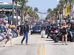 Daytona Beach Bike Week, also called Daytona Bike Week, is a motorcycle event and rally held annually in Daytona Beach, Florida. Since 2021, events have been added in DeLeon Springs. Approximately 500,000 people make their way to the rally area for the 10-day event. The festivities include motorcycle racing, concerts, parties, and street festivals. The event is usually held on the first full week of March (including the Fri-Sat-Sun prior to) and contends with the Sturgis Motorcycle Rally as the most popular motorcycle rally in the United States.[1][2][3][4][5]