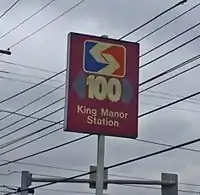 Originally named DeKalb Street station upon opening,[1] the name was changed to King Manor. SEPTA reverted to the station name on September 5, 2010.[2] The platform reflects the new name while the street sign retains the King Manor name.