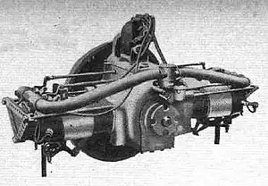 The design featured a horizontally opposed, four-cylinder layout with a single camshaft operating poppet valves through pushrods that were hollowed to save weight. The crankshaft was supported on ball bearings which allowed a simple 'splash' lubrication system to be used. Cooling was by water with the cylinders being encased in copper jackets. The engine ran adequately but was not placed into series production. A small order was received from the British Government for use in airships.[2]