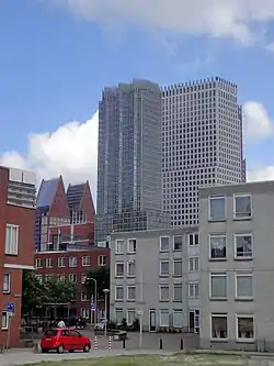 De Kroon (English: The Crown) is a residential and office skyscraper in the Center of The Hague, Netherlands. It is 131.5 metres (431 ft) tall and contains 41 floors, making it the sixth tallest building in the city. It contains 6 floor of office space combined with 13 floors of public housing, and 27 floors of houses for sale. Construction of De Kroon started in 2008 and ended in 2011. It was designed by architectural firm Rapp + Rapp and built by MAB Development BV.