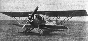The de Marçay 2 was designed at the end of World War I and flew early in 1919. It was a single bay sesquiplane with low aspect ratio, rectangular plan wings mounted with stagger. On each side a parallel pair of forward-leaning interplane struts defined the bays, with another, outward-leaning pair rooted at their base to brace the overhang of the upper wing. The centre of the latter was attached to the upper fuselage by short cabane struts. Only the upper wings carried ailerons; these narrowed in chord outward before rapidly widening at their tips to form horn balances.[1]