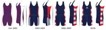 DMURC has had many different styles of kit over the years, ranging from tech tops to all in ones. Not only have the garments themselves changed but also the colours. Post 2002 the colours have been consistently: main, Navy / secondary, Red & White; this deviates from the more common De Montfort University sports team colours of black and red.