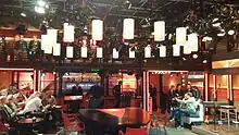 The chat, conducted at a large table, was hosted by Matthijs van Nieuwkerk and a rotating guest co-host. Guests were politicians, celebrities, artists, or simply people involved in projects or organizations that were topics of interest. The show contained a mixture of news, information, television bloopers and general entertainment. Frequent guests and panelists included Jan Mulder, Yvon Jaspers, Halina Reijn, Giel Beelen, Mathijs Bouman, Sylvana Simons, Marc-Marie Huijbregts and André van Duin.[1] House poet Nico Dijkshoorn had a weekly column in the show, usually on Wednesday. Each show had a live performance of a band in the studio. The show's closing sequence was Lucky TV, a small movie clip that featured a parody of news with changed voice-over text added to the video. One of those ending clips, where Hillary Clinton and Donald Trump were singing a duet during a presidential debate, became a viral phenomenon.[2] From 2014, Dutch Eurovision Song Contest entries were premiered on the show.