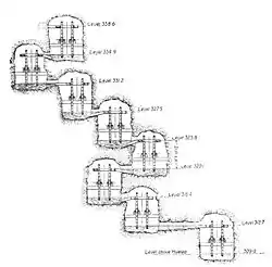 Vitruvius described the construction of the Archimedes' screw in Chapter 10, although did not mention Archimedes by name. It was a device widely used for raising water to irrigate fields and dewater mines. Other lifting machines mentioned in De architectura include the endless chain of buckets and the reverse overshot water-wheel. Remains of the water wheels used for lifting water have been discovered in old mines such as those at Rio Tinto in Spain and Dolaucothi in west Wales. One of the wheels from Rio Tinto is now in the British Museum, and one from the latter in the National Museum of Wales. The remains were discovered when these mines were reopened in modern mining attempts. They would have been used in a vertical sequence, with 16 such mills capable of raising water at least 96 feet (29 m) above the water table. Each wheel would have been worked by a miner treading the device at the top of the wheel, by using cleats on the outer edge. That they were using such devices in mines clearly implies that they were entirely capable of using them as water wheels to develop power for a range of activities, not just for grinding wheat, but also probably for sawing timber, crushing ores, fulling, and so on.