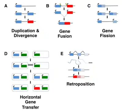 De novo gene birth is the process by which new genes evolve from DNA sequences that were ancestrally non-genic.[1][3] De novo genes represent a subset of novel genes, and may be protein-coding or instead act as RNA genes.[4] The processes that govern de novo gene birth are not well understood, although several models exist that describe possible mechanisms by which de novo gene birth may occur.